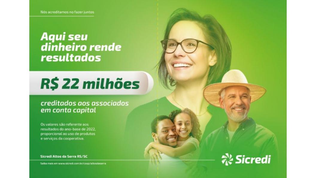 A partir desse resultado 22 milhões foram distribuídos aos associados em conta capital. A distribuição de resultados é um dos diferenciais do modelo cooperativista onde cada associado recebe valores calculados a partir da sua utilização de produtos e serviços da cooperativa, ou seja, proporcionalmente à sua geração de receita.