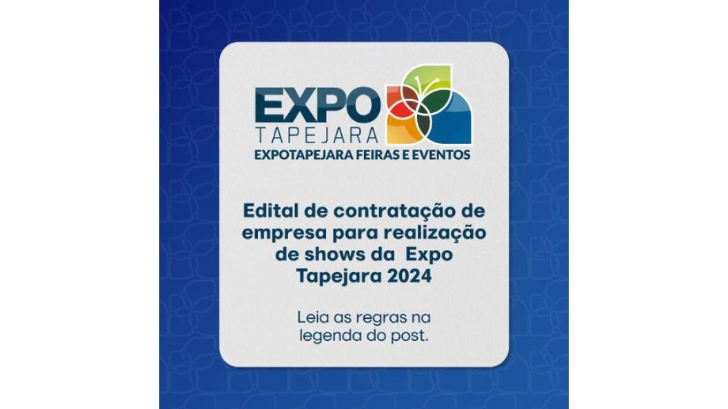 A Expo Tapejara Feiras e Eventos, vem a público informar que a seleção de Produtoras para realização dos shows da XII Expo Tapejara está oficialmente aberta, a partir do dia 21 de junho de 2023.