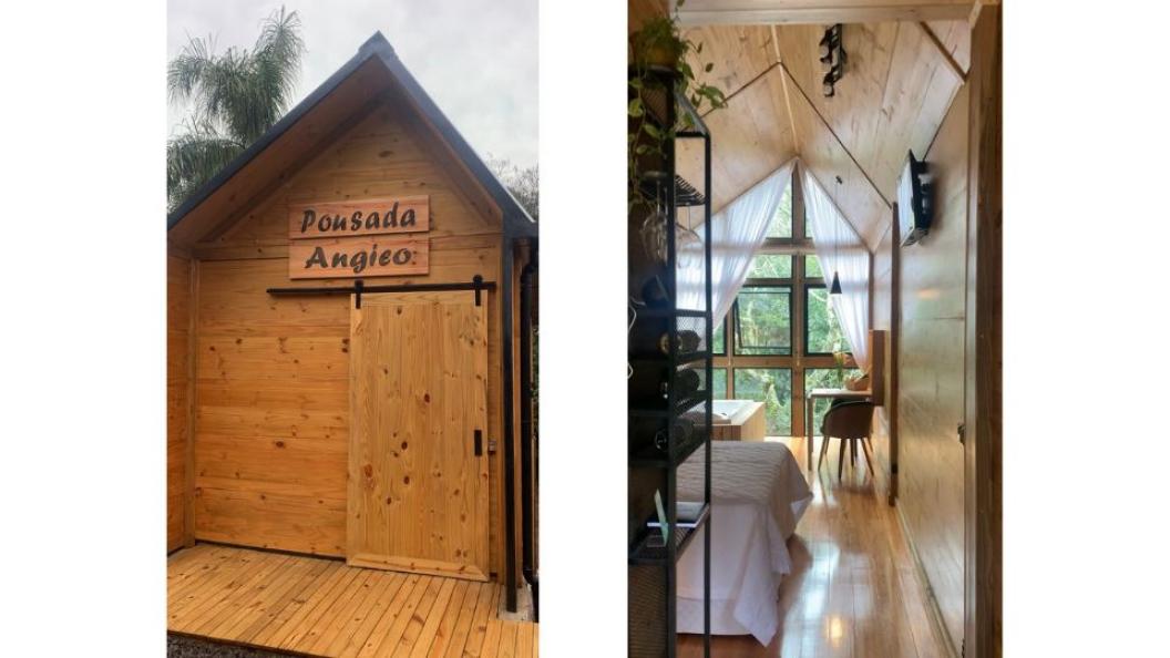 Rodeada de mata, de dentro da pousada, você percebe a conexão da madeira das paredes integrada com a natureza do lado externo. Uma conexão ímpar que faz os clientes viverem uma experiência de aconchego e bem-estar.