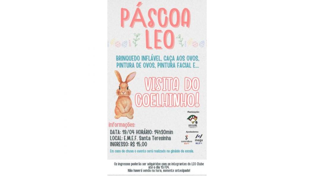 Participou da Programação da Mega Fm na manhã desta segunda-feira (07.04), a Presidente do LEO Clube Sananduva - Juliana Copatti, na oportunidade a entrevistada falou sobre a Páscoa LEO que acontece no dia 19 de Abril na E.M.E.F Santa Terezinha.