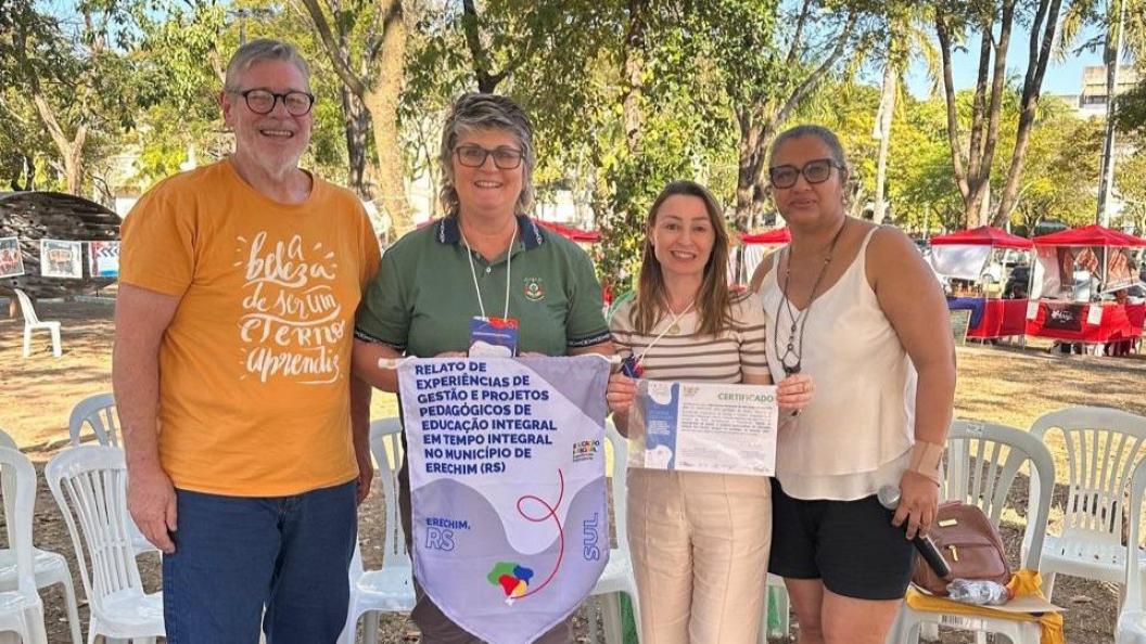 A Educação Municipal de Erechim foi selecionada para participar da Mostra Nacional de Educação Integral, promovida pelo Ministério da Educação (MEC), em parceria com a Universidade Federal de Minas Gerais (UFMG), que foi realizada na última quarta (01) e quinta-feira (02), em Belo Horizonte (MG). O evento reúne experiências inspiradoras de todo o país, com o objetivo de valorizar práticas que fortalecem a Educação Integral em Tempo Integral nas redes públicas de ensino.